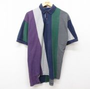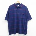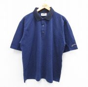 XL★古着 半袖 ポロ シャツ メンズ 90年代 90s 大きいサイズ 紺他 ストライプ