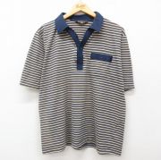XL★古着 半袖 ポロ シャツ メンズ 大きいサイズ 紺他 ボーダー