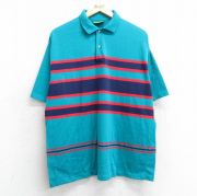XL★古着 半袖 ポロ シャツ メンズ 90年代 90s コットン イタリア製 青緑他 ボーダー