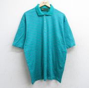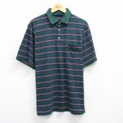 XL★古着 半袖 ポロ シャツ メンズ 緑他 ボーダー