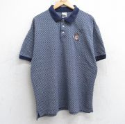 XL★古着 ビューグルボーイ 半袖 ポロ シャツ メンズ 90年代 90s 総柄 鹿の子 大きいサイズ 紺他