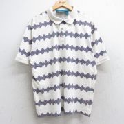 XL★古着 半袖 ポロ シャツ メンズ 90年代 90s 大きいサイズ コットン 白他 ボーダー