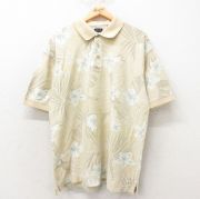 XL★古着 IZOD 半袖 ポロ シャツ メンズ 花柄 コットン 薄ベージュ