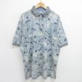 XL★古着 半袖 ポロ シャツ メンズ 00年代 00s 総柄 大きいサイズ ロング丈 コットン 薄紺他