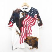 XL★古着 半袖 ポロ シャツ メンズ 鳥 星条旗 大きいサイズ コットン 白他