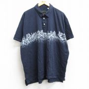 XL★古着 半袖 ポロ シャツ メンズ 花柄 大きいサイズ コットン 紺