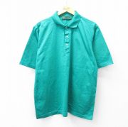 XL★古着 半袖 ポロ シャツ メンズ 90年代 90s 木 コットン USA製 青緑