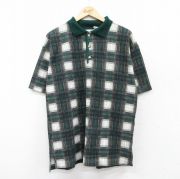 XL★古着 半袖 ポロ シャツ メンズ 90年代 90s コットン USA製 緑他 チェック