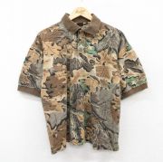 XL★古着 半袖 ポロ シャツ メンズ 90年代 90s 鹿の子 コットン USA製 茶他 迷彩