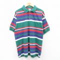 XL★古着 半袖 ポロ シャツ メンズ 鹿の子 大きいサイズ コットン 緑他 ストライプ