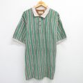 XL★古着 セントジョンズベイ 半袖 ポロ シャツ メンズ 90年代 90s 大きいサイズ ロング丈 コットン USA製 緑他 グリーン ストライプ 【spe】 25may16 中古 トップス