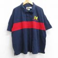 XL★古着 半袖 ポロ シャツ メンズ 90年代 90s 大きいサイズ 紺他 ストライプ