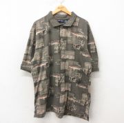 XL★古着 半袖 ポロ シャツ メンズ 00年代 00s 総柄 鹿の子 大きいサイズ コットン 緑