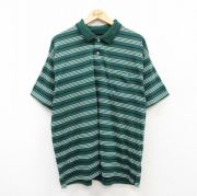 XL★古着 IZOD 半袖 ポロ シャツ メンズ ワンポイントロゴ 大きいサイズ コットン 鹿の子 緑他 ボーダー