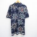 【商品名】 XL★古着 半袖 ポロ シャツ メンズ 00年代 00s 花 葉 鹿の子 コットン 紺他