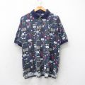 XL★古着 半袖 ポロ シャツ メンズ 総柄 大きいサイズ コットン 紺他