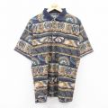 【商品名】 XL★古着 ビューグルボーイ 半袖 ポロ シャツ メンズ 00年代 00s 総柄 紺他