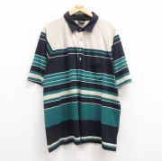 XL★古着 半袖 ポロ シャツ メンズ 90年代 90s 青緑他 ストライプ