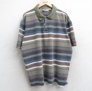 XL★古着 IZOD 半袖 ポロ シャツ メンズ 90年代 90s ワンポイントロゴ 鹿の子 大きいサイズ コットン ベージュ他 ボーダー