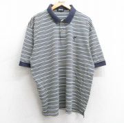 XL★古着 半袖 ポロ シャツ メンズ 90年代 90s 大きいサイズ コットン USA製 紺他 ボーダー