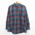 L★古着 長袖 シャツ メンズ ロング丈 コットン ボタンダウン 紺他 ネイビー チェック 24jan05 中古 トップス