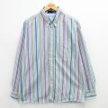 L★古着 長袖 シャツ メンズ 90年代 90s コットン ボタンダウン USA製 紺他 ネイビー ストライプ 24jan08 中古 トップス