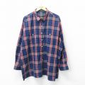 XL★古着 長袖 シャツ メンズ 90年代 90s 大きいサイズ ロング丈 紺他 ネイビー チェック 24sep03 中古 トップス