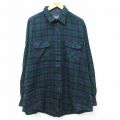 XL★古着 長袖 シャツ メンズ 90年代 90s 大きいサイズ ロング丈 緑他 グリーン タータン チェック ブラックウォッチ 24sep26 中古 トップス