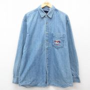 XL★古着 長袖 ラガー シャツ メンズ 90年代 90s 襟デニム 大きいサイズ ロング丈 コットン USA製 紺