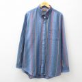 XL★古着 長袖 シャツ メンズ 90年代 90s 大きいサイズ ボタンダウン USA製 薄紺他 ネイビー ストライプ 24nov25 中古 トップス