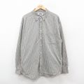XL★古着 長袖 シャツ メンズ 大きいサイズ コットン ボタンダウン ベージュ他 ストライプ