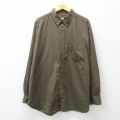 XL★古着 長袖 シャツ メンズ 大きいサイズ ロング丈 コットン ボタンダウン 緑系 グリーン 24dec20 中古 トップス