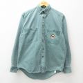 L★古着 長袖 シャツ メンズ 90年代 90s バッファロー コットン ボタンダウン USA製 緑 グリーン デニム 25jan22 中古 トップス
