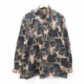 L★古着 長袖 シャツ メンズ シカ 総柄 ボタンダウン 黒他