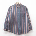 L★古着 長袖 シャツ メンズ 90年代 90s ボタンダウン 紺他 ストライプ