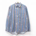 L★古着 長袖 シャツ メンズ 00年代 00s コットン 紺他 ストライプ