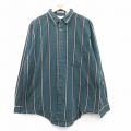 【商品名】 XL★古着 長袖 シャツ メンズ 00年代 00s ロング丈 緑他 ストライプ