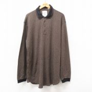 XL★古着 長袖 ポロ シャツ メンズ 大きいサイズ ロング丈 こげ茶