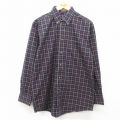 L★古着 長袖 シャツ メンズ コットン ボタンダウン 紫系他 チェック