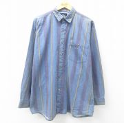 XL★古着 長袖 シャツ メンズ 90年代 90s コットン 紺他 ストライプ