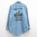 L★古着 長袖 シャツ メンズ ラスベガス 花 コットン ボタンダウン 薄紺 デニム