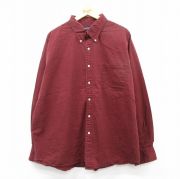 XL★古着 ランズエンド 長袖 シャツ メンズ 大きいサイズ ロング丈 コットン ボタンダウン エンジ系