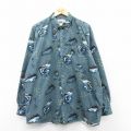 【商品名】 XL★古着 長袖 シャツ メンズ 00年代 00s 魚 ロング丈 コットン ボタンダウン 紺他