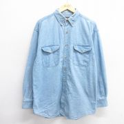 XL★古着 長袖 シャツ メンズ 大きいサイズ コットン ボタンダウン 紺 デニム