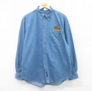 XL★古着 長袖 シャツ メンズ シカ 大きいサイズ コットン ボタンダウン 紺 デニム