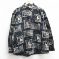 【商品名】 L★古着 長袖 シャツ メンズ シカ 総柄 ボタンダウン 黒他