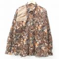 XL★古着 長袖 シャツ メンズ 総柄 コットン ボタンダウン 茶他