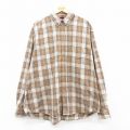 XL★古着 長袖 シャツ メンズ 大きいサイズ ボタンダウン ベージュ系他 チェック