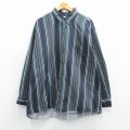 XL★古着 長袖 シャツ メンズ 00年代 00s 大きいサイズ コットン ボタンダウン 紺他 ネイビー ストライプ 25feb28 中古 トップス