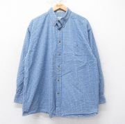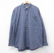 XL★古着 長袖 シャツ メンズ 大きいサイズ コットン ボタンダウン 紺他 チェック